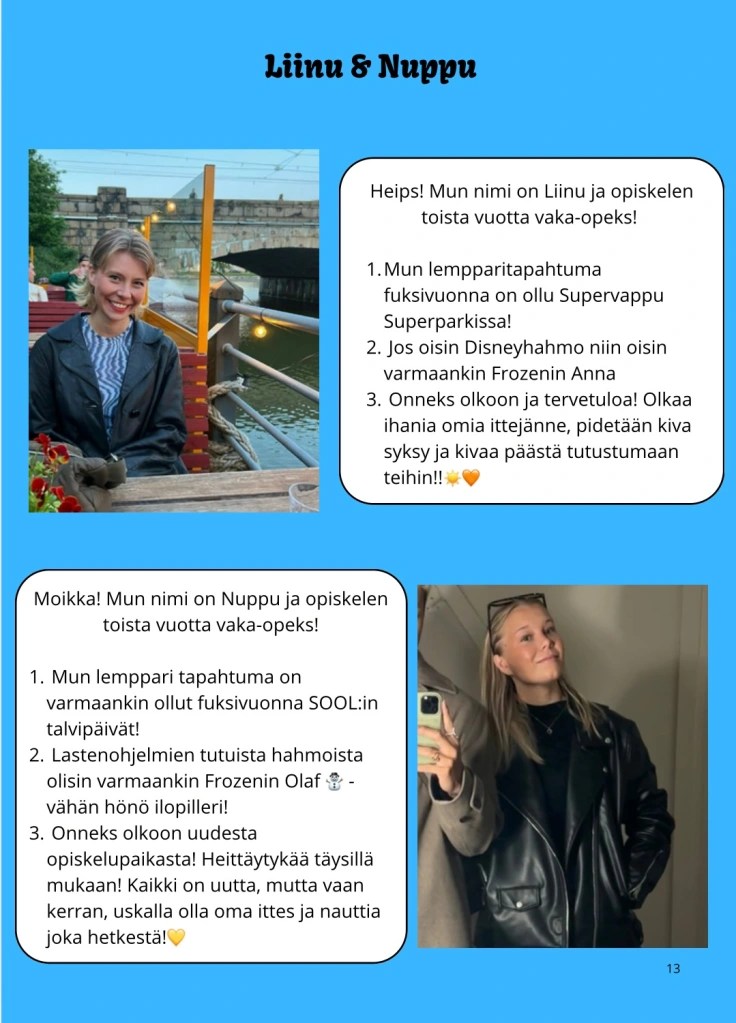 Vuoden 2025 tuutorit ja futu-vastaavat esittäytyvät! Sivun lopusta löytyy myös tuutoreiden tekemä kirje uusille opiskelijoille ❤